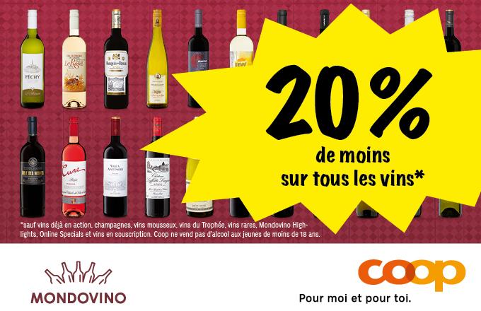 Profitez de -20% sur tous les vins dès le 23 octobre chez Coop !